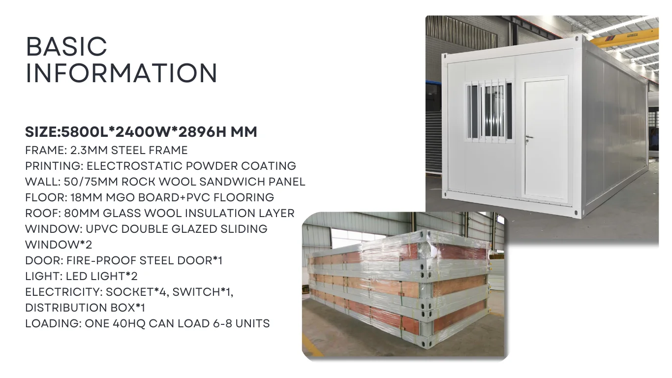 Discover the flexibility and convenience of the BOX SPACE Modern Prefab House, a stylish tiny home built for modern living. Constructed with high-quality galvanized steel and insulated with rock wool sandwich panels, this container home combines durability, energy efficiency, and industrial design. The flat-pack structure allows for rapid installation, with a typical unit assembled by three workers in just two hours. Each house can be fully customized in layout and size, making it ideal for a variety of uses, including offices, studios, guest accommodations, or mobile tiny homes on wheels. With a lifespan of 15 to 20 years and CE-certified quality, this prefab house offers a long-lasting and cost-effective solution for anyone seeking a sustainable and movable living space. Comfortable, functional, and modern, the BOX SPACE prefab home is perfect for those who want the freedom to design their living environment without compromising on style or quality. shipping included in price.