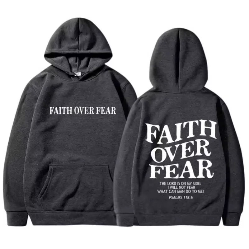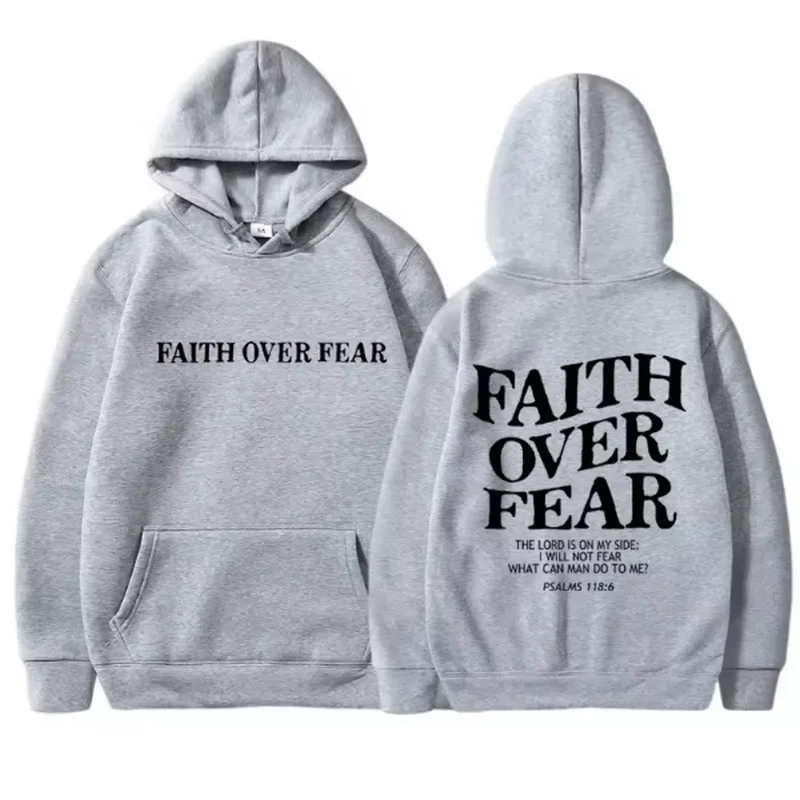 Faith Over Fear Hoodie - Bible Verse Pullover, Cozy & Stylish for Men & Women, Fleece Hoodie for Autumn & Winter