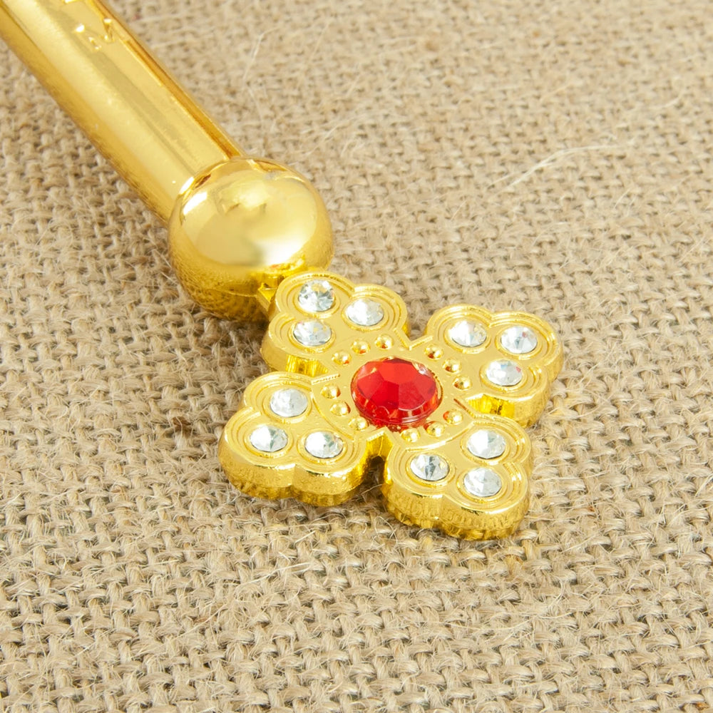 This gold-tone metal cross figurine features a traditional design inspired by Eastern European art. Embellished with crystal accents, it brings a classic and refined touch to your home or office decor.