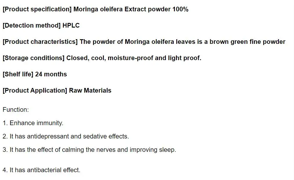 Ingredients: 100% Organic Moringa Leaf Powder